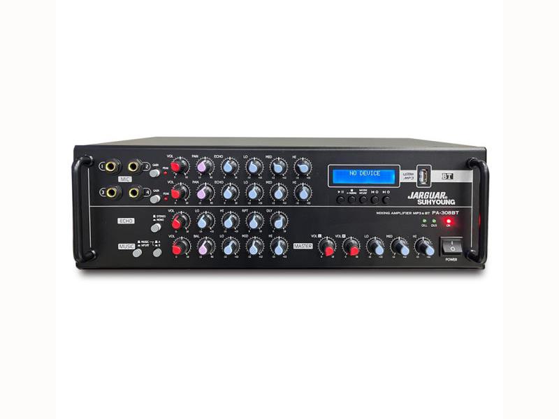 Jarguar Suhyoung PA-203BT is a Korean Made 2 Channel Professional Karaoke Mixing Amplifier. Heavy duty build quality with top notch electronics. PA-203BT is perfect for KJs, KTV owners and the home user looking for a high end and reliable karaoke mixing amp. Bluetooth connectivity for wireless use. USB player is great for playing background music.